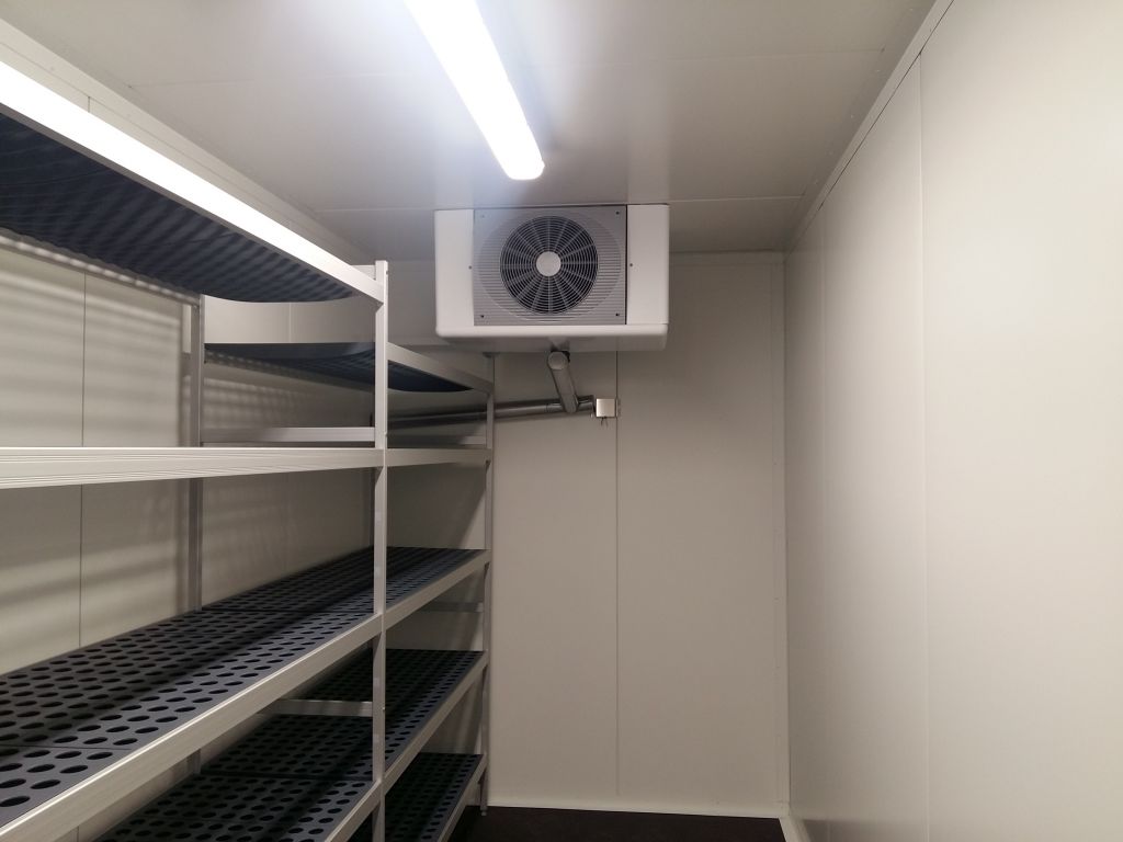 Enfin, nous fournissons les éclairages, les étagères, les sols renforcés en tôle larmée, les enregistreurs de température et transmetteur d’alarme autonome…